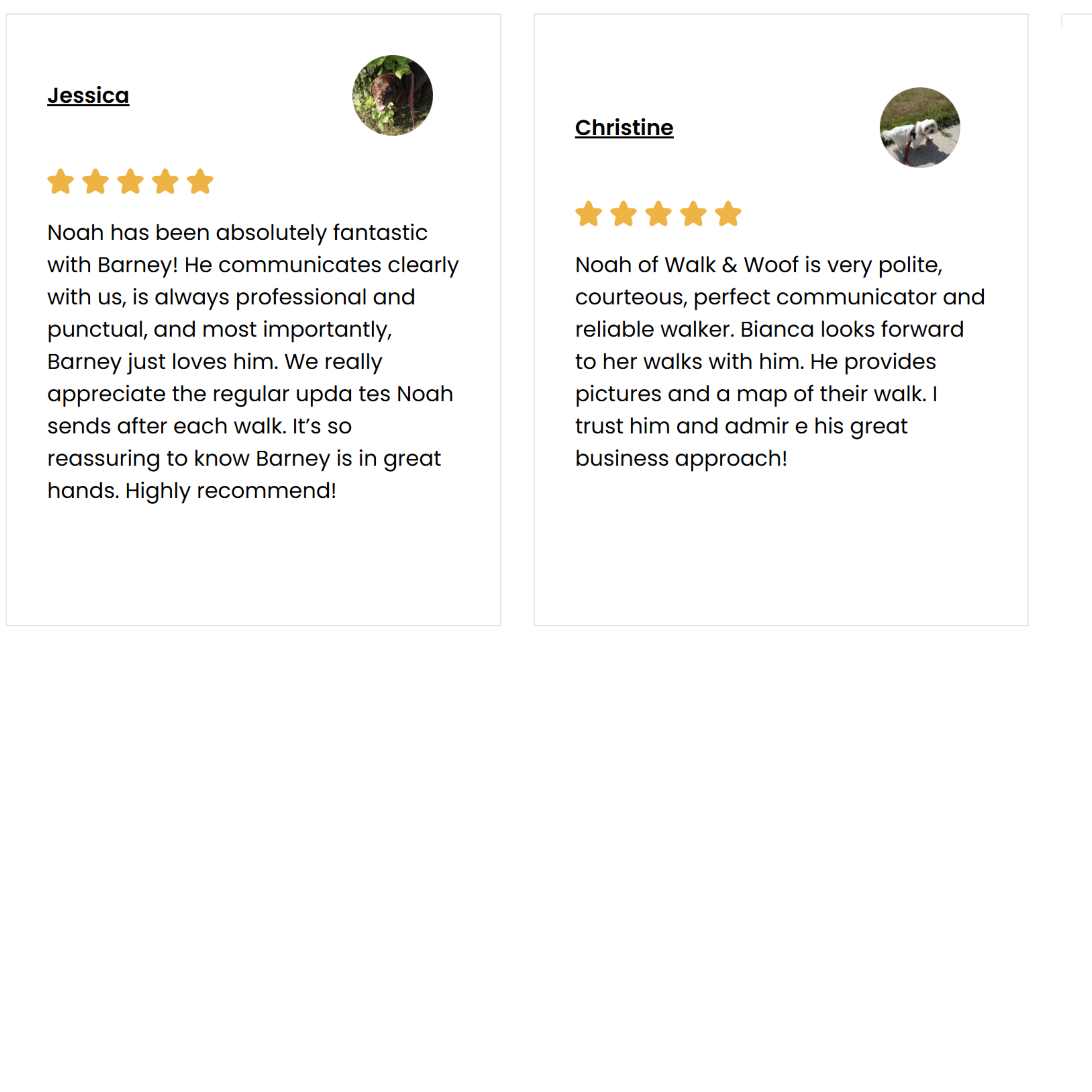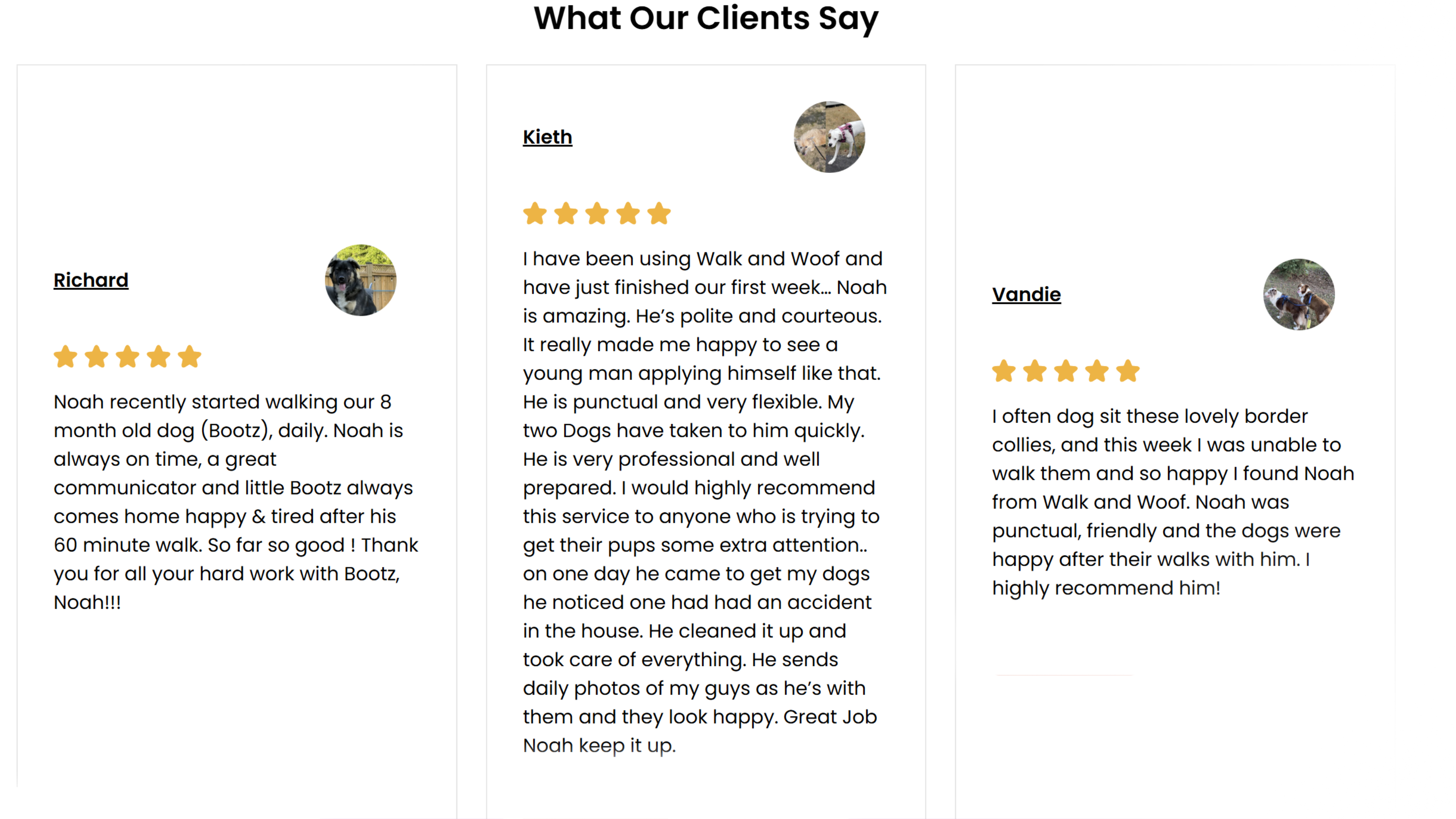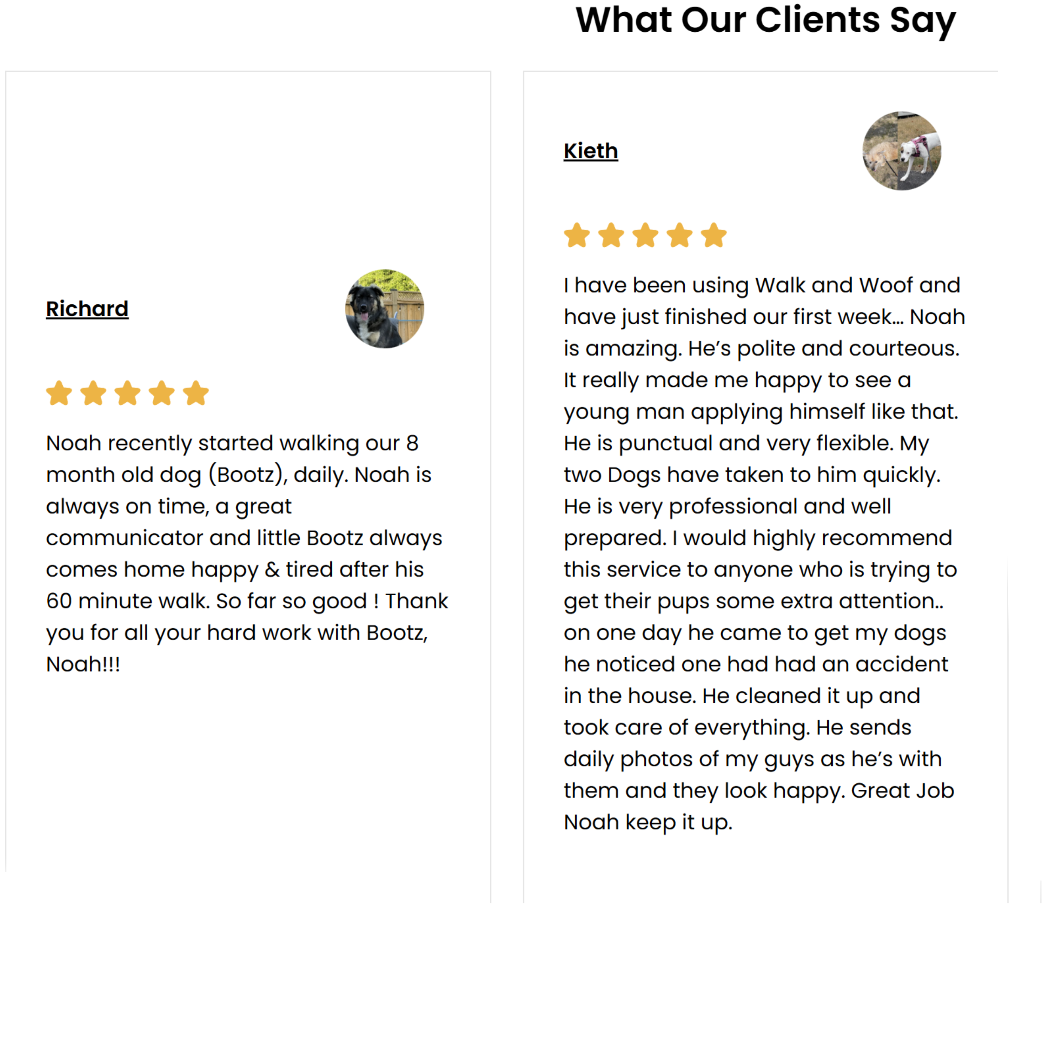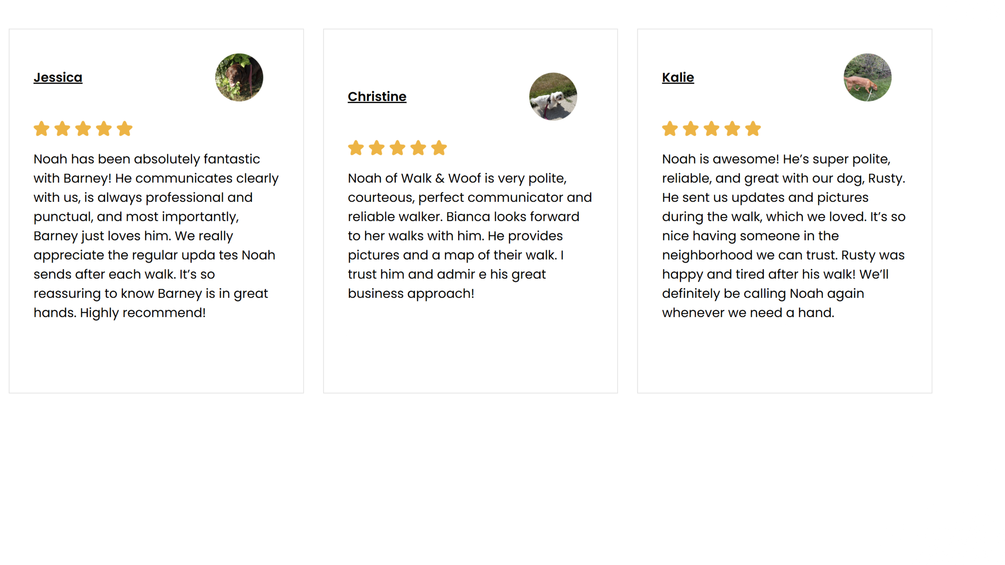 After each walk, we’ll send you a quick update on how your dog did along with some adorable snapshots from their outing. We know how much your dog means to you, and we want you to see the joy they experience every time they’re out with us.